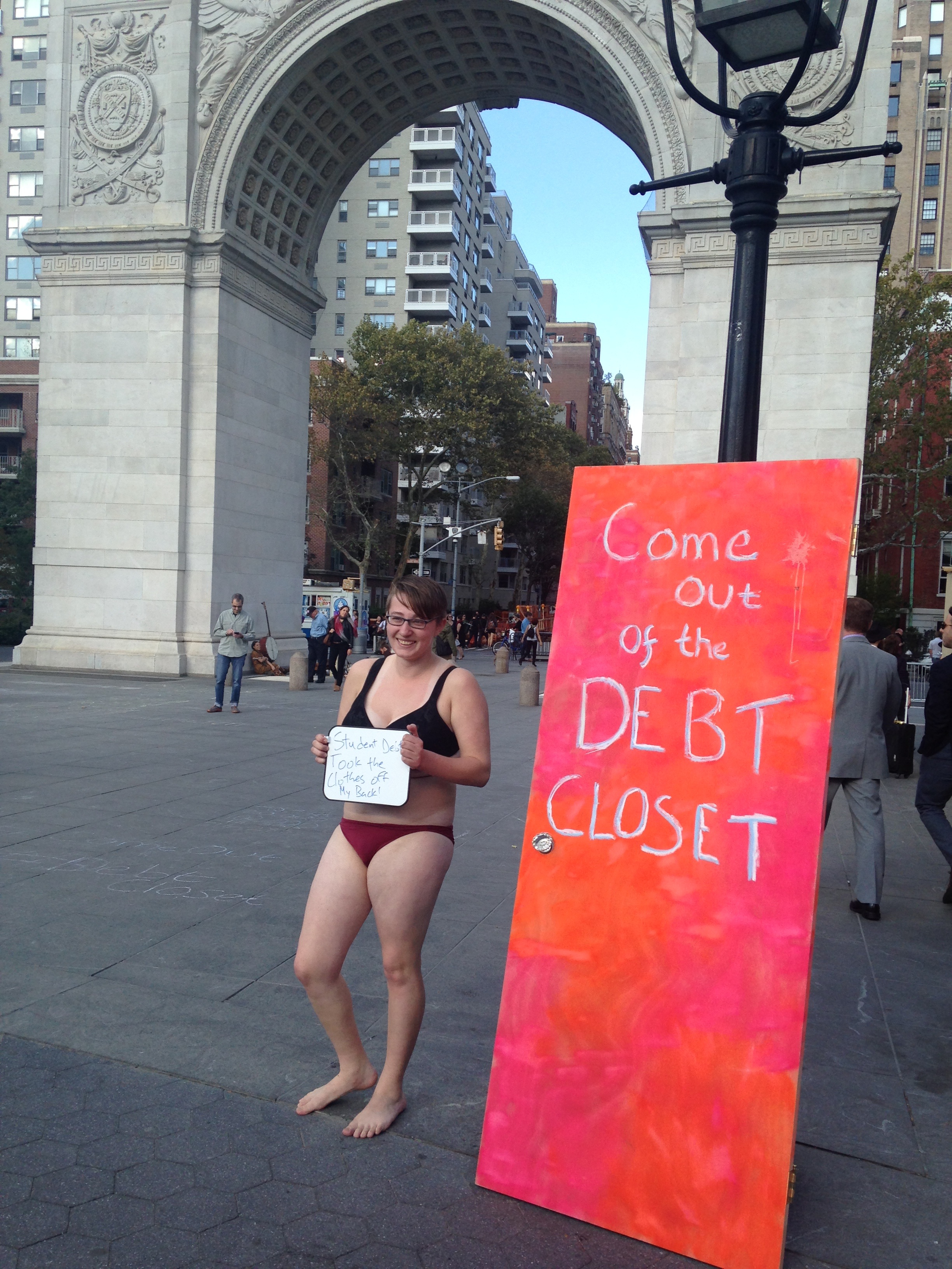 And just like the Christian sin, for our students, it seems that debt has become an alibi, and an excuse: “High Tuition made me take my clothes off!” one student protestor’s poster said in Washington Square. “High tuition made me find a Sugar Daddy.” “High Tuition made me major in Business.”